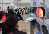 本物の交通信号機で仕組みを学んだあと、ミニチュア信号機を使って、電線の皮むきや配線、動作テストを行います。