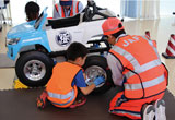 迫力満点の建設機械シュミレーターやラジコンクレーンを操作して建設のお仕事を体験しよう!ファンの内蔵された空調服を着て、涼しさ体験もできます。